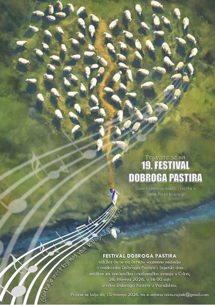 19. Festival Dobroga Pastira – susret zborova mladih i solista, održat će se na četvrtu vazmenu nedjelju, 26. travnja, u 16 sati u crkvi Dobroga Pastora u Varaždinu.