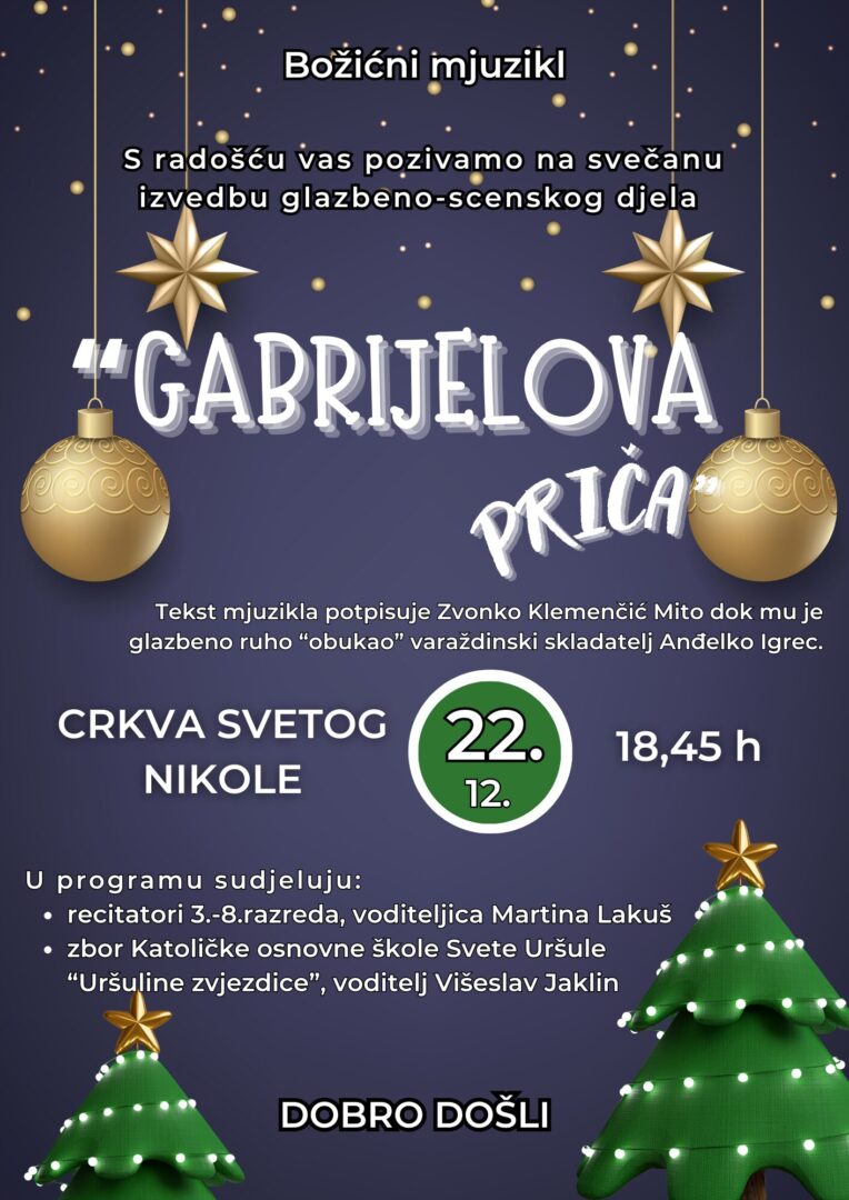 Božićni mjuzikl 11-12-2025 S radošću vas pozivamo na svečanu izvedbu glazbeno-scenskog djela “Gabrijelova priča”!