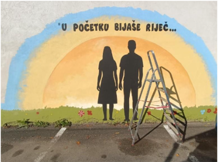 U sklopu uređenja školskog dvorišta, učenici koji pohađaju likovnu grupu (5. – 8. razred) sudjeluju u oslikavanju zidova motivima cvijeća kako bi prostor učinili ljepšim i ugodnijim za boravak.