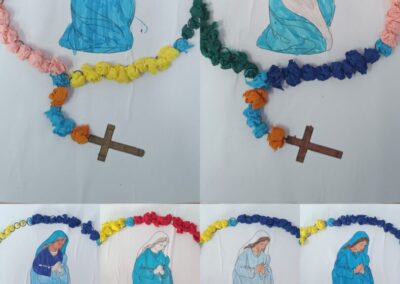 Tijekom mjeseca rujna i listopada učenice su na izvannastavnoj grupi radili temperama, flomasterima, škarama, ljepilom, krep papirom, a koristili su i listove starih knjiga te slikarsko platno. Od navedenih materijala imali smo aktivnosti „List“, „Krunica u slici“ te „Znak SERVIAM“.