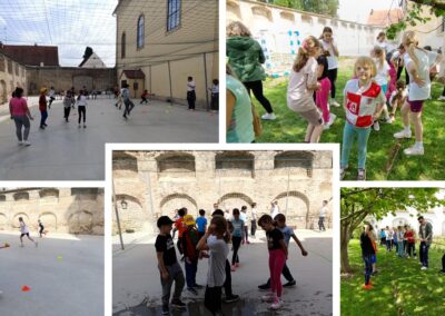 Projektni dan započeo je skupnom molitvom i prisjećanjem na preminulog Papu. Nakon toga započela su sportska natjecanja za učenike razredne i predmetne nastave. Tako su se učenici razredne nastave natjecali u graničaru i štafeti, a učenici predmetne nastave u odbojci, futsalu, košarci, graničaru protiv učitelja, čak i obaranju ruku.