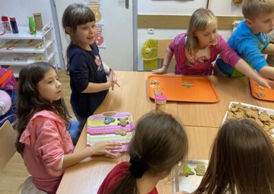 Učenice 1. razreda Elizabeta, Marta, Sofija, Klara, Katja i Ana iz 2.b svojim radovima uljepšavaju hodnike škole. Likovno smo obilježili advent, Božić, maškare, Svjetski dan polarnih medvjeda…