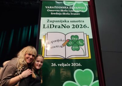 I ove školske godine predstavili smo našu školu na županijskoj razini smotre LiDraNo za literarno, dramsko, novinarsko i radijsko stvaralaštvo osnovnih škola Varaždinske županije. Smotra je održana u Kulturnom centru Ivan Rabuzin u Novom Marofu u organizaciji OŠ Ljubešćica.